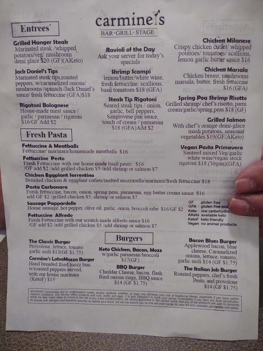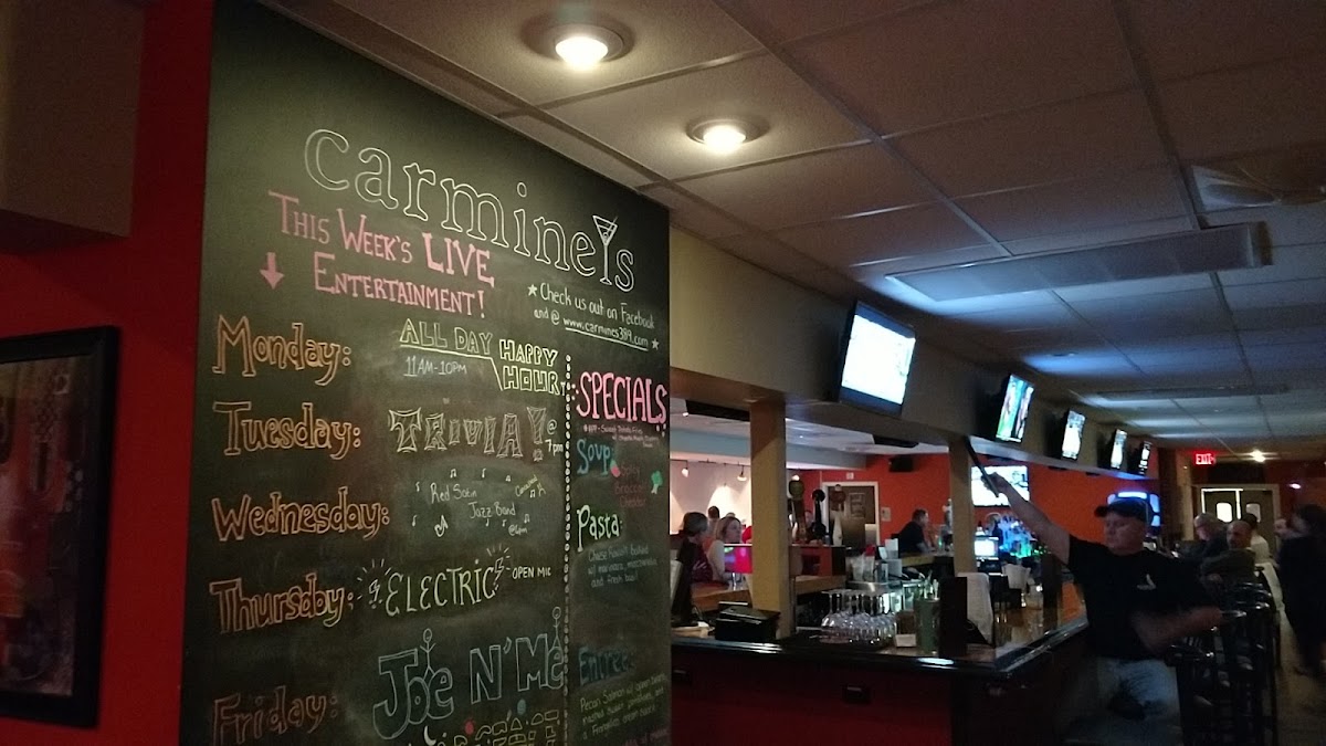 Carmine's Bar • Grill • Stage on Main Street, East Hartford, is a vibrant Italian eatery that uniquely blends classic flavors with a live music atmosphere. The menu offers an enticing array of appetizers such as hand-breaded Fried Mozzarella Triangles and crispy Brussels Sprouts with soppressata and balsamic drizzle, catering well to keto and vegetarian preferences. Entrees shine with versatility—whether it’s the tender Bistro Steak with mushroom demi glace or the comforting Pasta Carbonara featuring fresh fettuccine and a creamy egg-based sauce. Vegan and gluten-free options ensure inclusivity without compromising taste.